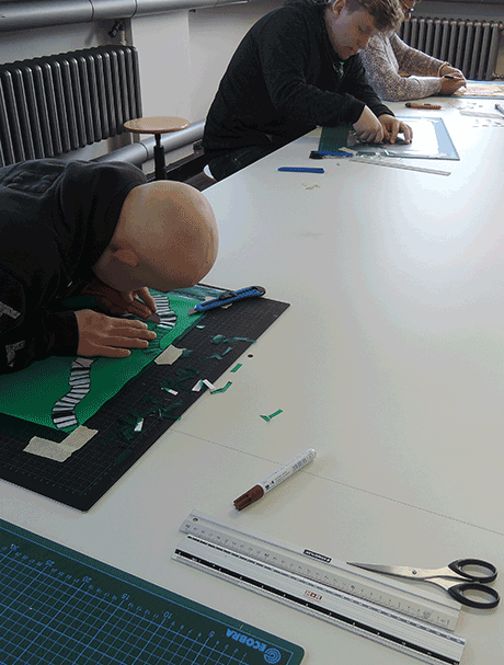 We were talking about different textile materials and techniques and then designing a printig pattern together.