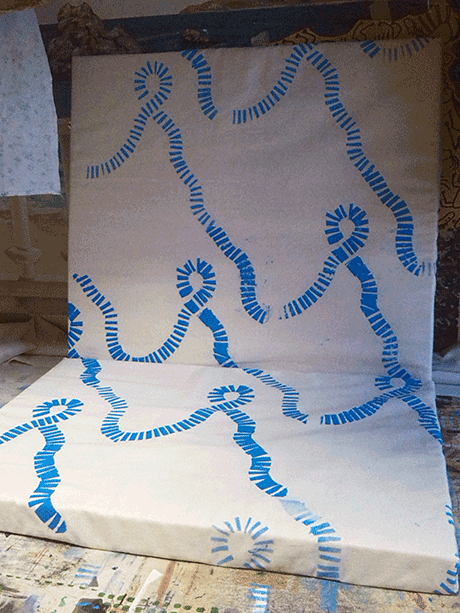 I then sewed a sitting pillow out of this fabric for a piece of furniture that they built in a different workshop.