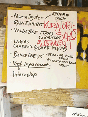Then we built it together and had changing exhibitions each week with spontaneous topics and works of everyone.