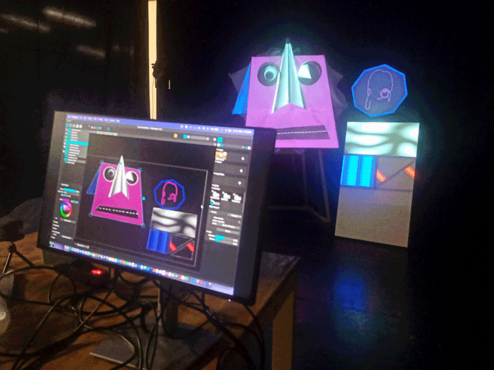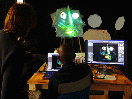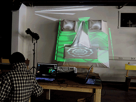 The next step - which was conducted by Chiara Stuto - was to map projections with self made video material on the masks.