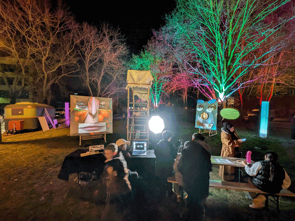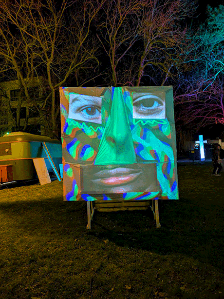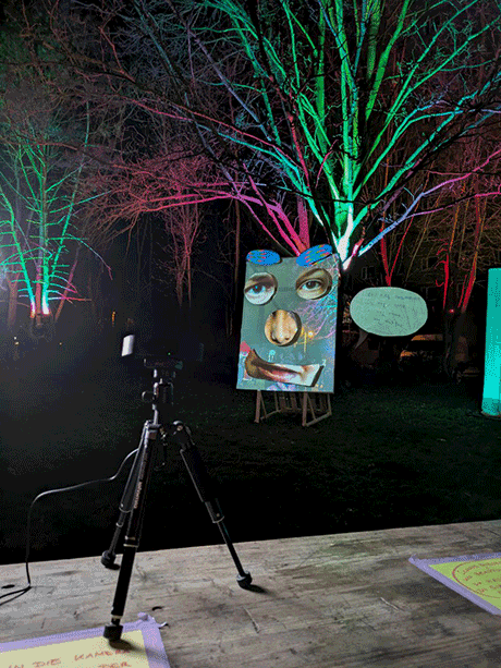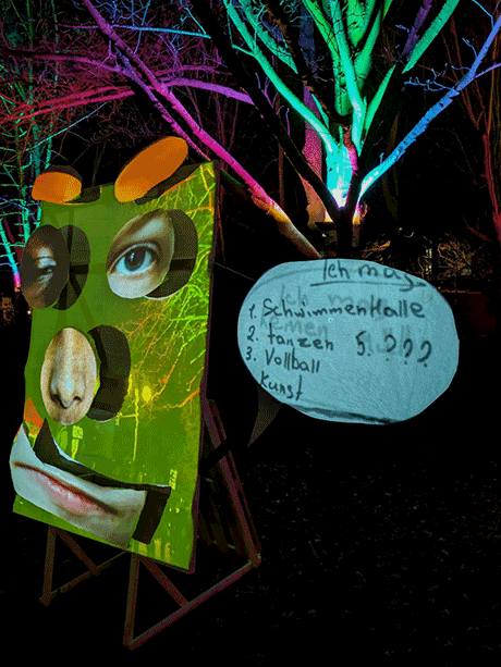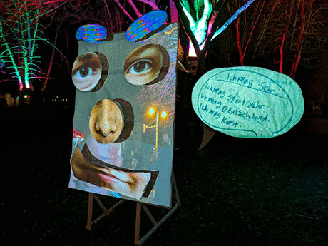 The project was presented as an interactivesculpture on "Blockparty am Campus Halle-Neustadt", where the visitors could write their thoughts into the speech bubbles of the masks and have their own face parts appear in the mask collage.