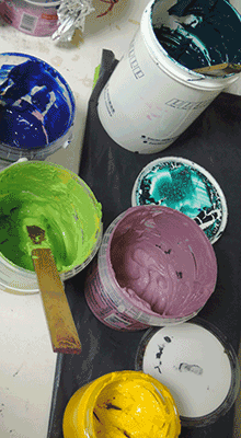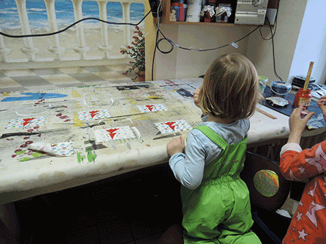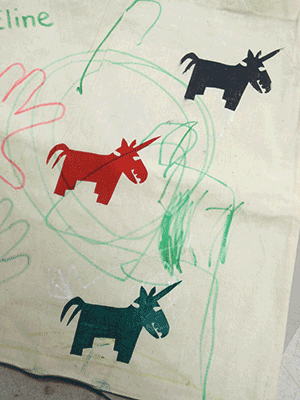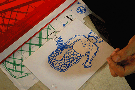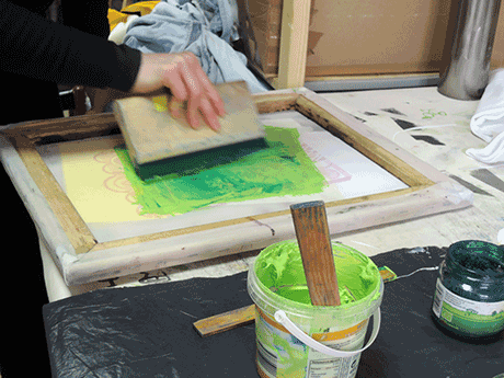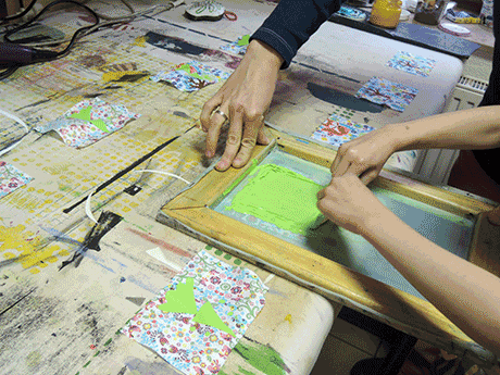 For some months I opened my workshop weekly for people, who wanted to make some stencil screenprinting or other textil techniques.