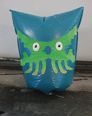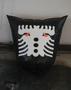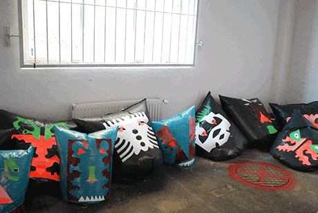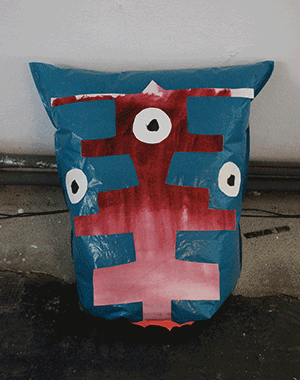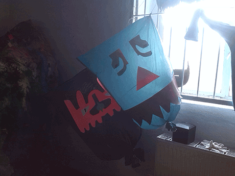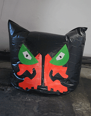 I made mainly monsters out of garbage bags with collage technique faces on them, that were spread all over the room.