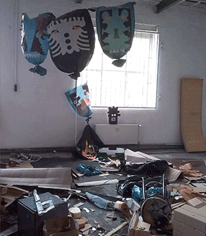 We were building a giant "city" installation in Kontor 80, made of cardboard, garbage, everything.