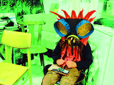 We were dressing up, carrying self made insects, showing short animated movies (that w made before) on buidlings walls with a tiny projector and shouting for insect's rights.