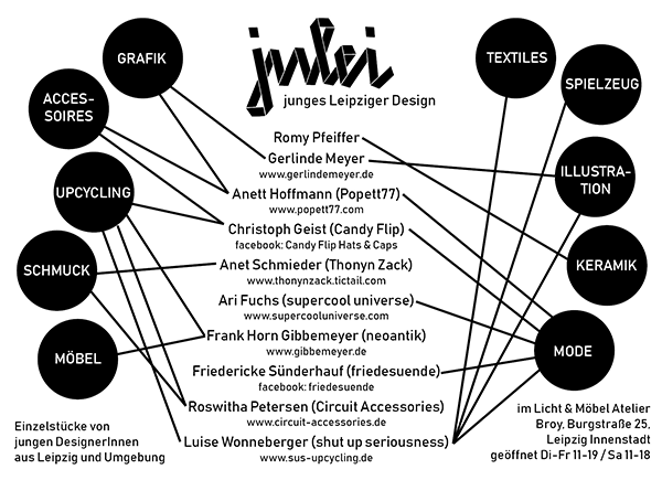 Mit "Julei" (= junges Leipziger Design) durften wir einen kleinen Pop-up-Shop für zehn junge Leipziger Designer*Innen im "Lichtatelier Broy" einrichten, dessen Inhaberin die Idee hatte, uns Platz in ihrem Laden zu geben.