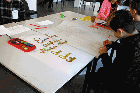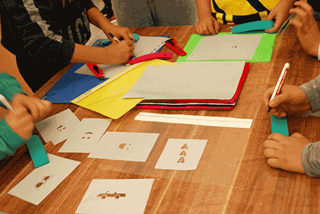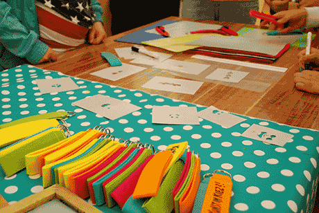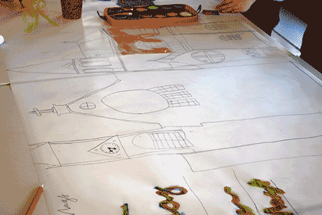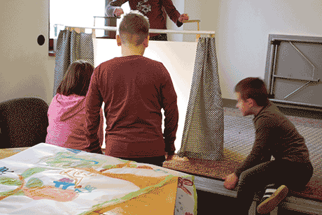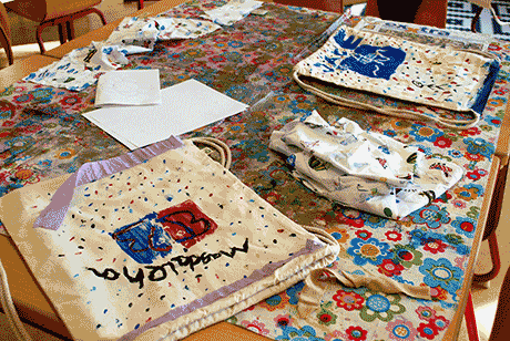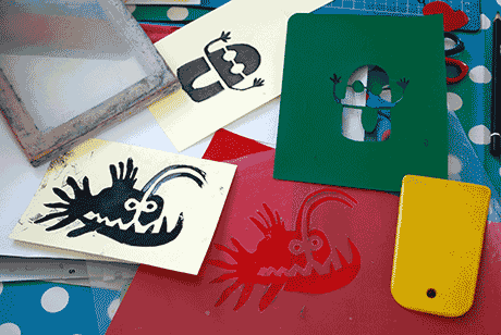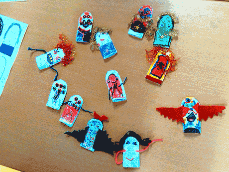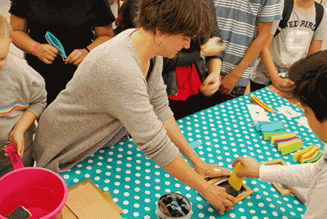 I was part of the team for some years and made workshops in: letter construction, a noise machine and sound experiments, sewing and screeprinting lanyards, Comic drawing and finger puppets.