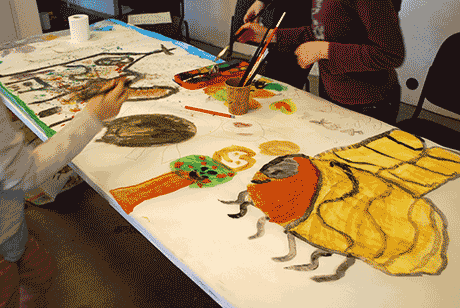 "Kunst im Kiez" (= art in the neighbourhood) is a project managed by Pöge-Haus in Leipzig, that offers all kinds of creative workshops for kids.