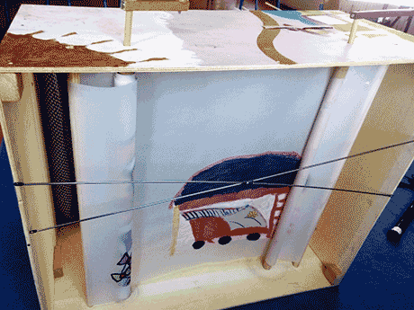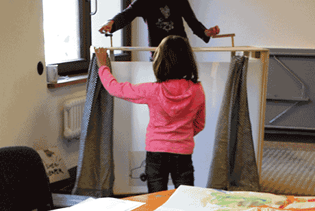 For a workshop together with Sophie Stephan and others I built a cranky box - an analogue cinema box, with which the kids showed self painted movies on a long roll of back-lit transparent paper.