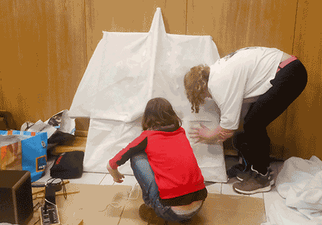 We had 2 creative experimental days with kids at makerfest organized by @wissenschaftsladen_leipzig in Stadtteilhaus Ihmelsstraße. I made two big faces together with kids, and they came to life with the great projections by Mahir and motion sensitive sound by ectoplastic lab.