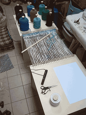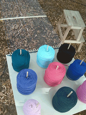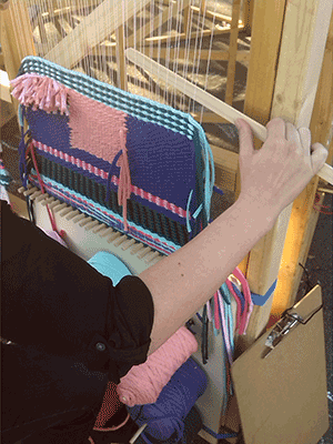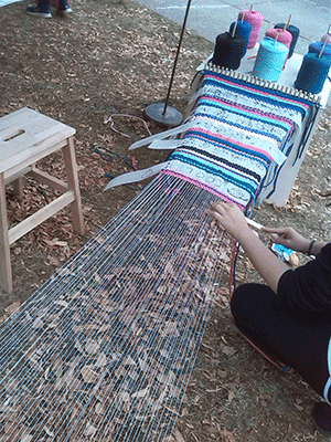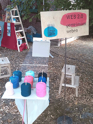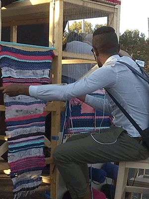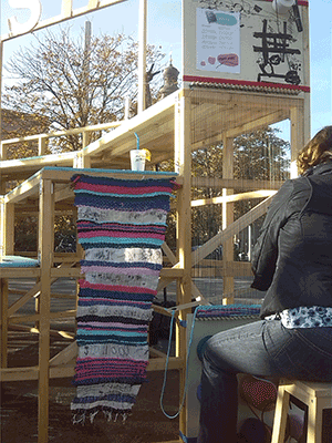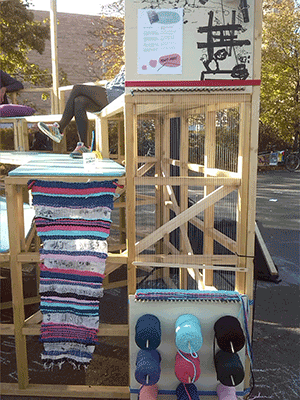 Also I constrcted a foldable community loom, on which people could weave a carpet together and incorporate stripes of fabric that they could write or paint something on.