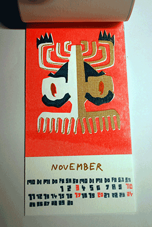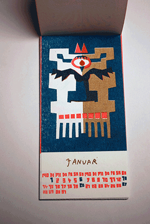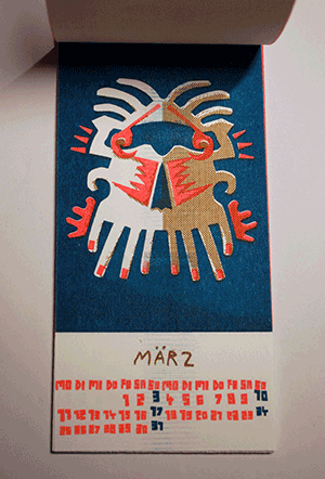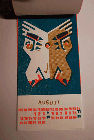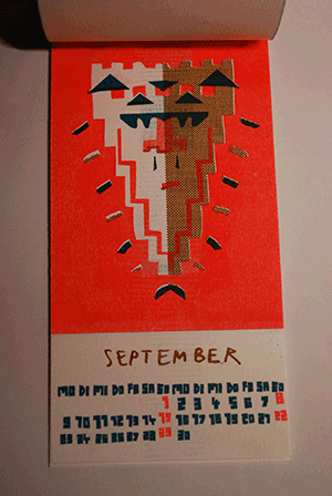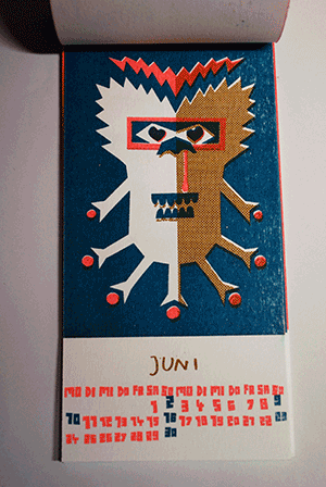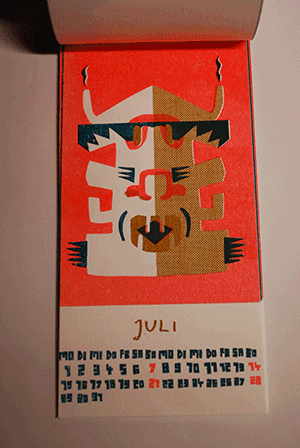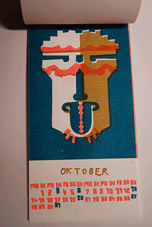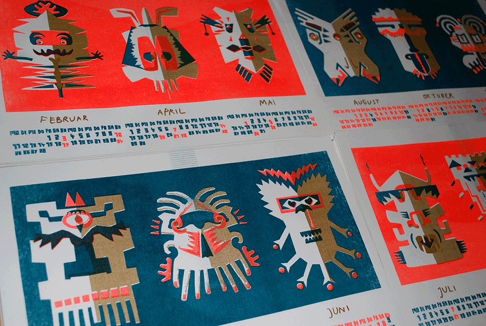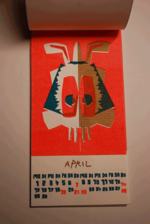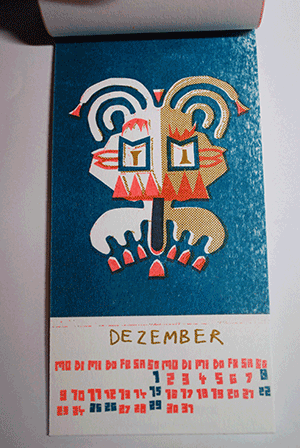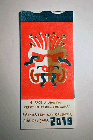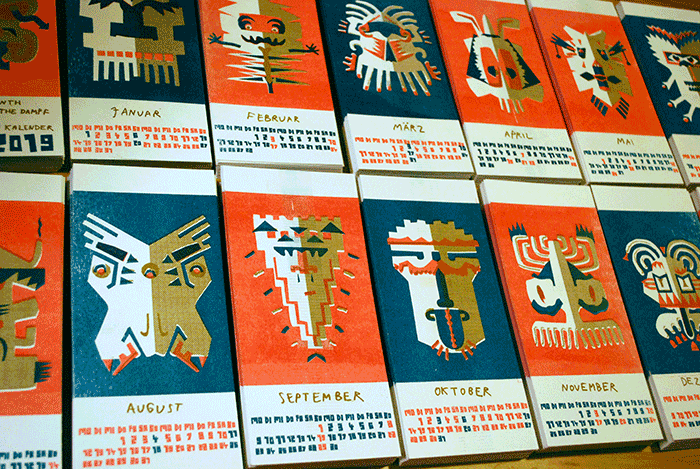 2018 machte ich einen Riso-gedruckten Maskenkalender für das Jahr 2019.