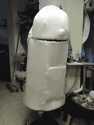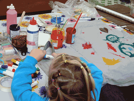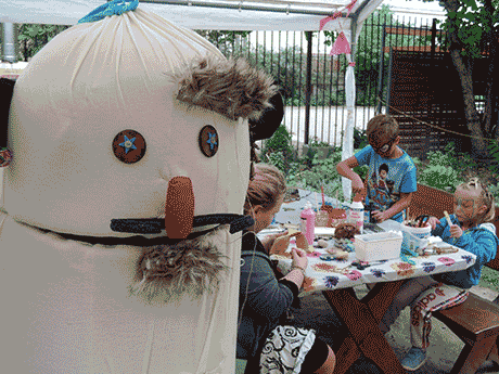 On the workshop day we gave it a face, hair and clothes and afterwards they could use the puppet for their cooking workshops and feed it with all kinds of fake food.