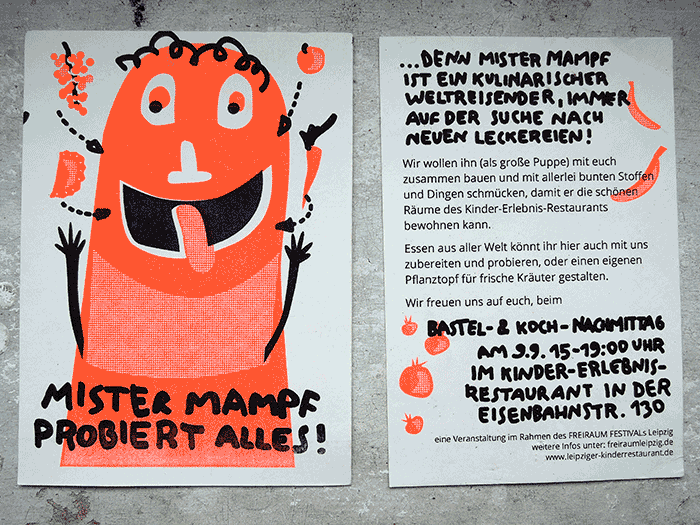 The wonderful Kinder-Erlebnisrestaurant on Eisenbahnstraße asked me to create this feedable puppet.