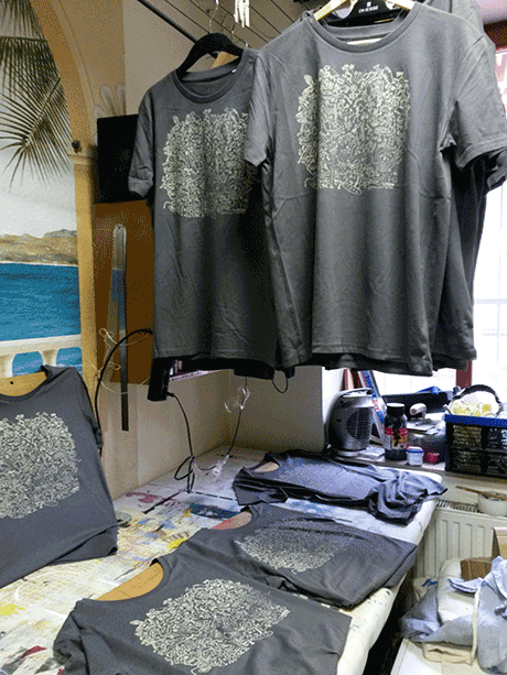 Wir haben das Motiv auch auf T-Shirts siebgedruckt.