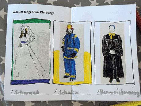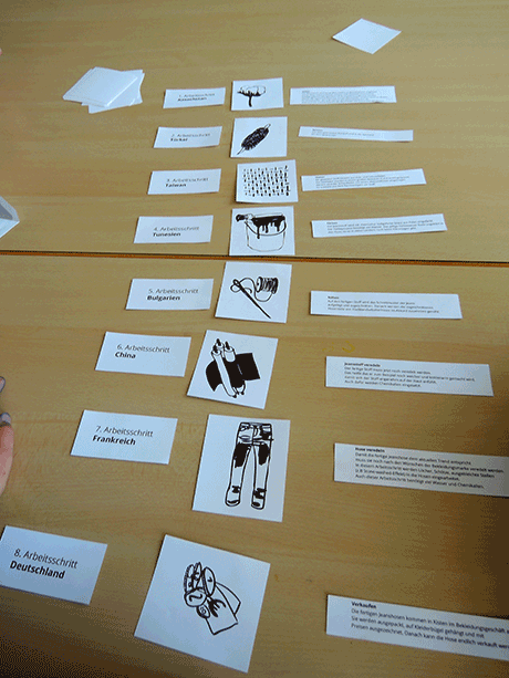 We designed a "textile adventurer passport", in which the children could for example put textile samples, colour pictures and explore the journey of a denim jeans.