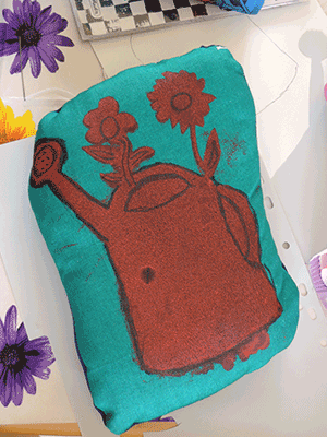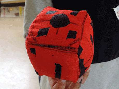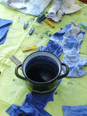 We dyed, spun, wove, and also tried to make life screen exposure for screen printing with spontaneous motifs of the kids in a school.