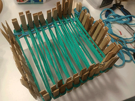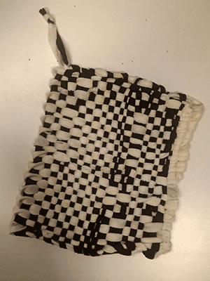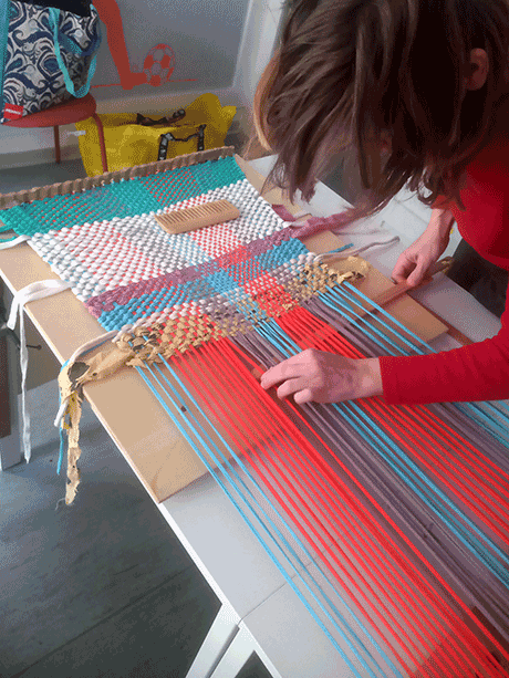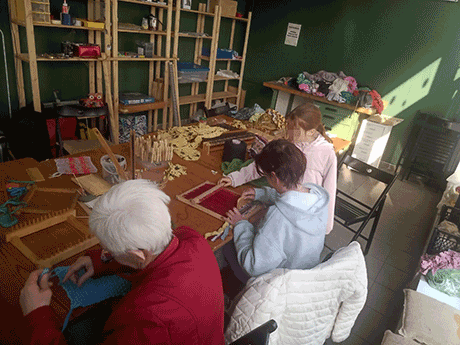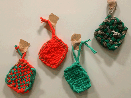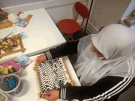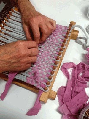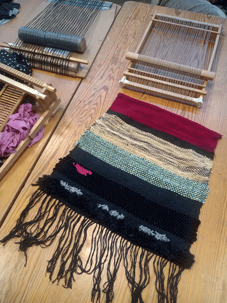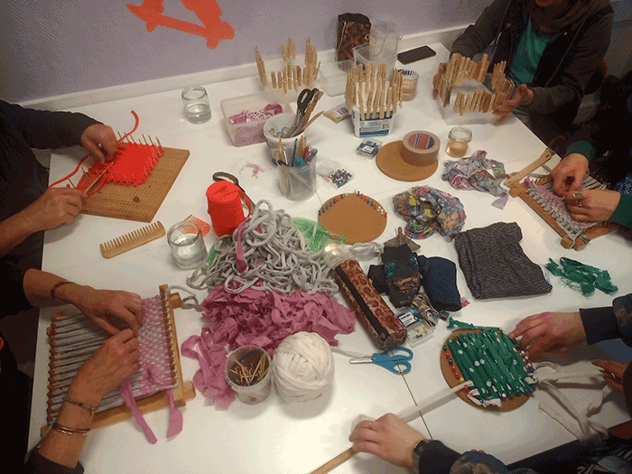 The participants could cut old fabrics (T-Shirts, bedsheets,...) into stripes and weave carpets, potholders or tawashis (little dishwashing clothes).
