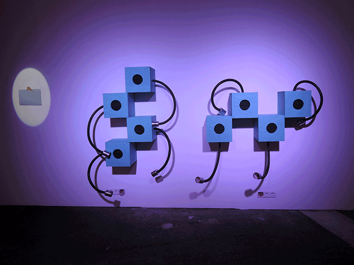 I installed boxes filled with different materials, that visitors could touch with their hands and listen to through tubes without seeing them.