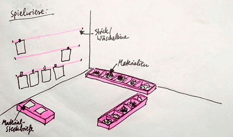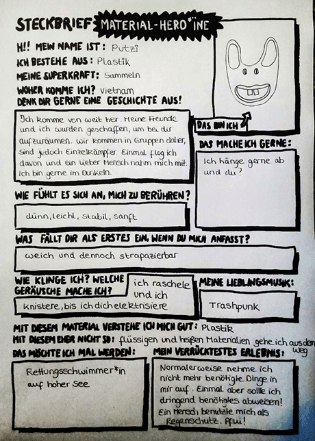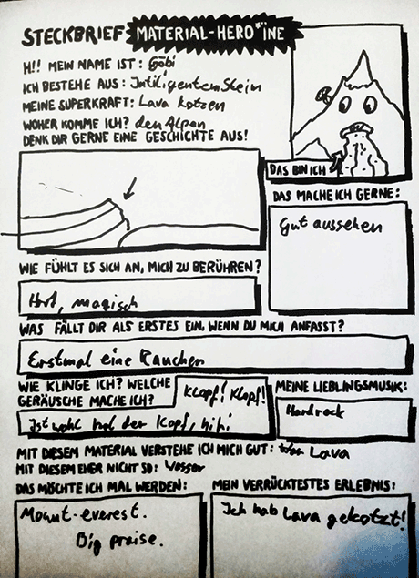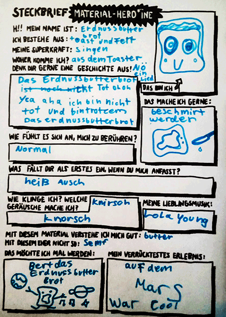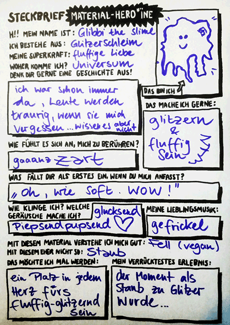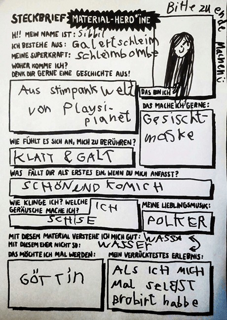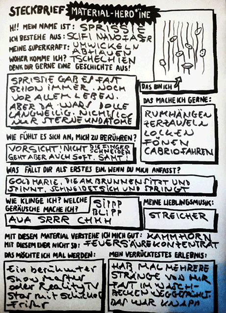 There was also a writing table with prepared forms, on which visitors could paint and create their personal material hero*ine.